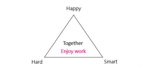 Cycle of enjoying work:Happy >>> Smart >>> Hard